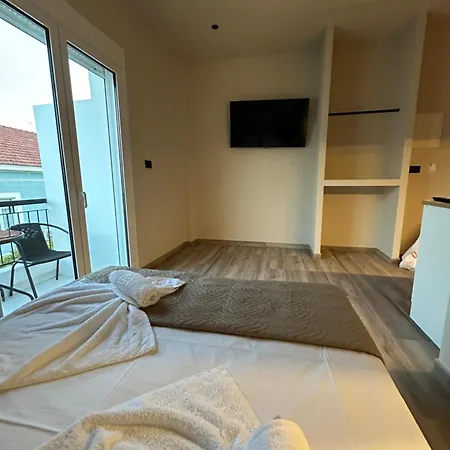 Serena 02 ferielejlighed ligger næsten 1 km fra Nea Chora Strand. Denne ferielejlighed måler 26 m^2 og har 1 soveværelser, 1 badeværelser og et fuldt udstyret køkken.